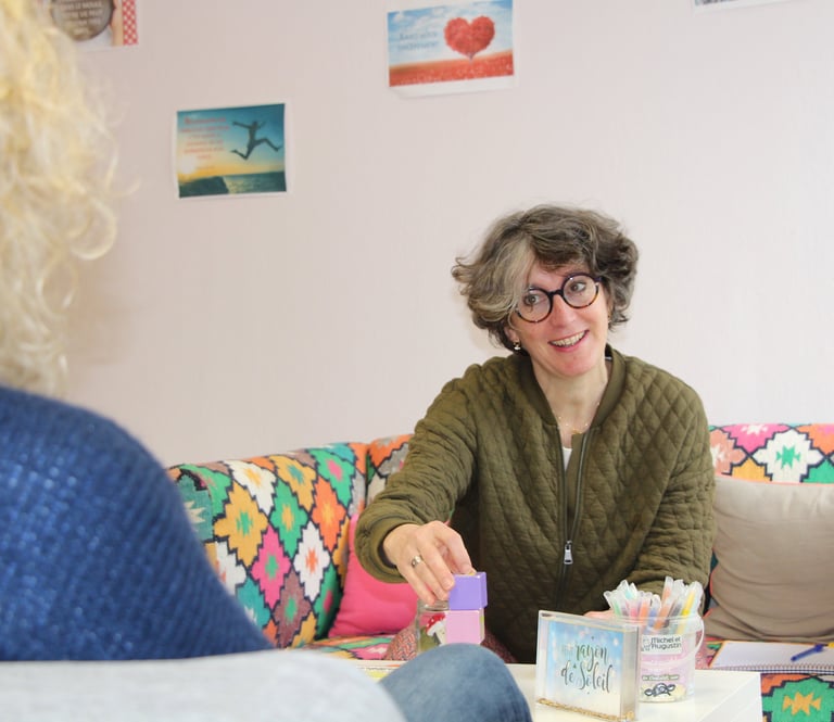 L'enfant participe activement à la séance au travers des différentes techniques que je lui propose, lui permettant d'atteindre son objectif de mieux-être.