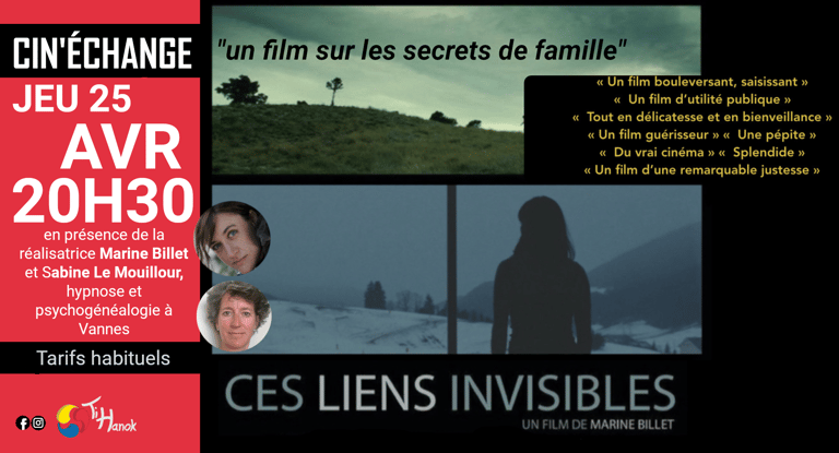 Évènement ciné-échange du jeudi 25 avril 2024 à 20H30 au cinéma Ti Hanok à Auray : « Ces liens invisibles », film de Marine Billet.